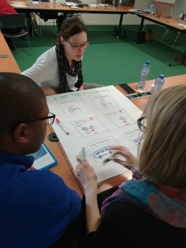 Photo: Participants of a communications workshop drew storyboards to build their capacity to develop narratives.